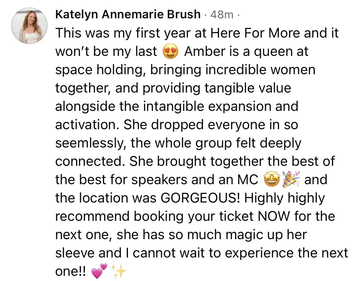 For me, Amber, the founder and business midwife of Here for More Live, I say again and again…. my mission is to see your vision come into fruition.