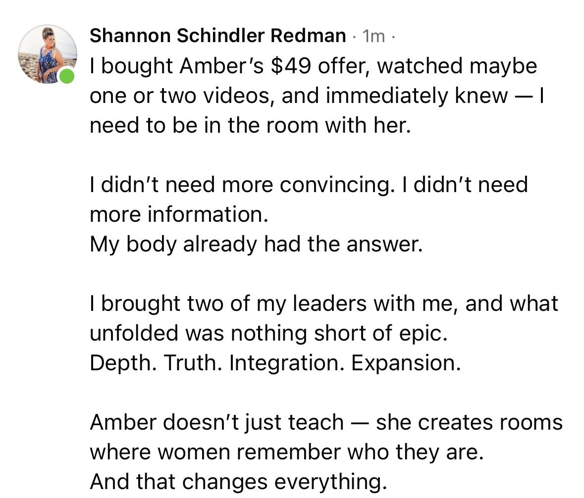 This is where you come for more, to expand through embodiment, lead with deeper devotion, and grow your mission in a way that holds you, too.
